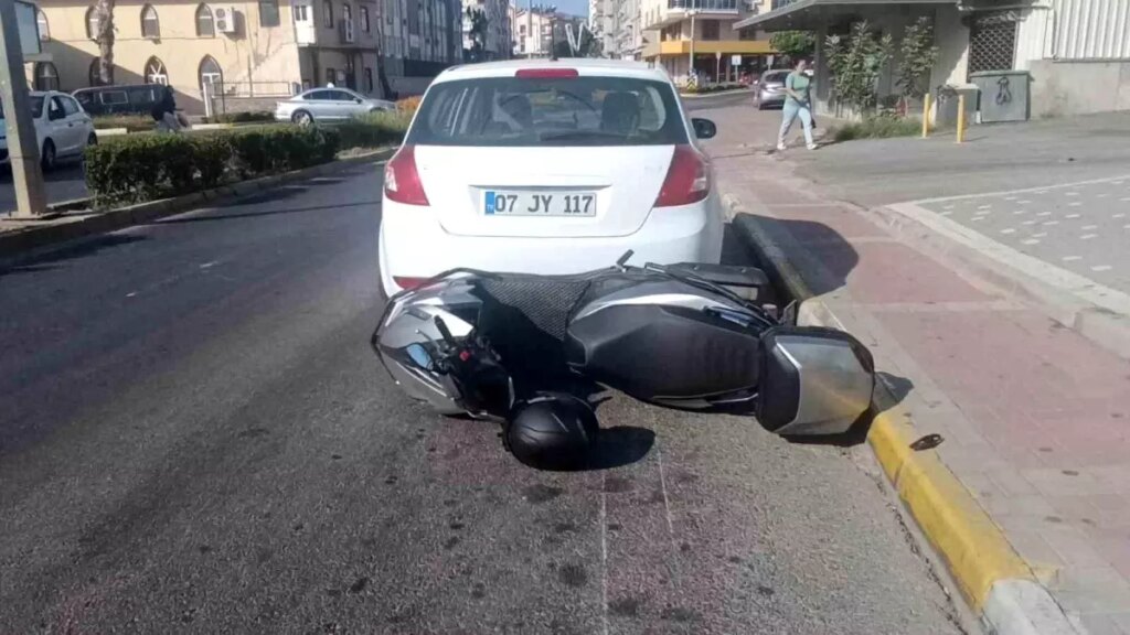 Antalya’nın Manavgat ilçesinde seyir halindeki motosikletin virajı alamayarak devrilmesinin akabinde sürüklenerek park halindeki araca arttan çarpması sonucu meydana gelen kazada motosiklet şoförü yaralandı.