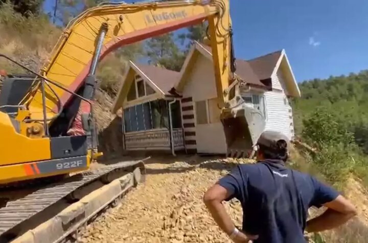 Antalya'nın Gazipaşa ilçesinde, orman hududuna yapıldığı gerekçesiyle yıkım kararı verilen konteyner meskeni sahibi, ray...
