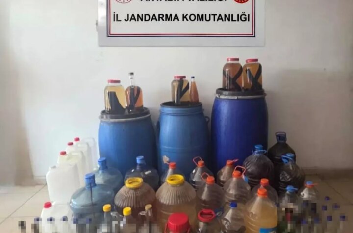 Antalya'nın Alanya ilçesinde gerçekleştirilen operasyonda, jandarma takımları tarafından 585 litre düzmece şarap, 46 litre...