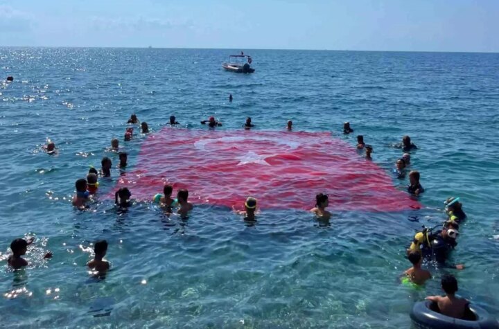 30 Ağustos Zafer Bayramı'nın 103. yılı, Antalya'da yüzücü ve dalgıçların denizde dev Türk Bayrağı...