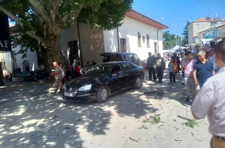 Isparta'nın Şarkikaraağaç ilçesinde bir asırlık çınar ağacının kısmı, seyir halindeki bir arabanın üzerine düştü....