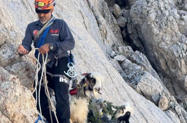 Antalya'nın Gündoğmuş ilçesinde mahsur kalan 5 keçi, İHH takımlarının 5 saatlik kurtarma operasyonuyla sağ...