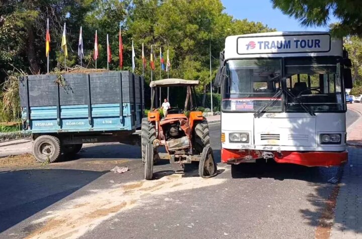 Antalya'nın Manavgat ilçesinde bir otelden çıkan traktör, safari için yolcu taşıyan ring otobüsüyle çarpıştı....