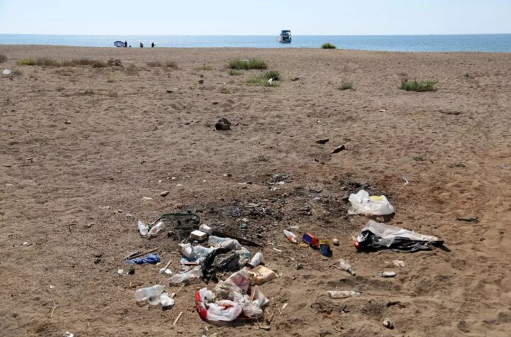 Antalya'nın Aksu ilçesindeki Kumköy kıyısında göze çarpan çöp yığınları, jenerasyonu tehlike altındaki caretta caretta...