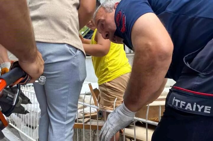 Isparta'da apartman girişindeki demir korkuluklardan atlamaya çalışan bir çocuğun bacağına demir saplandı. İtfaiye takımları...