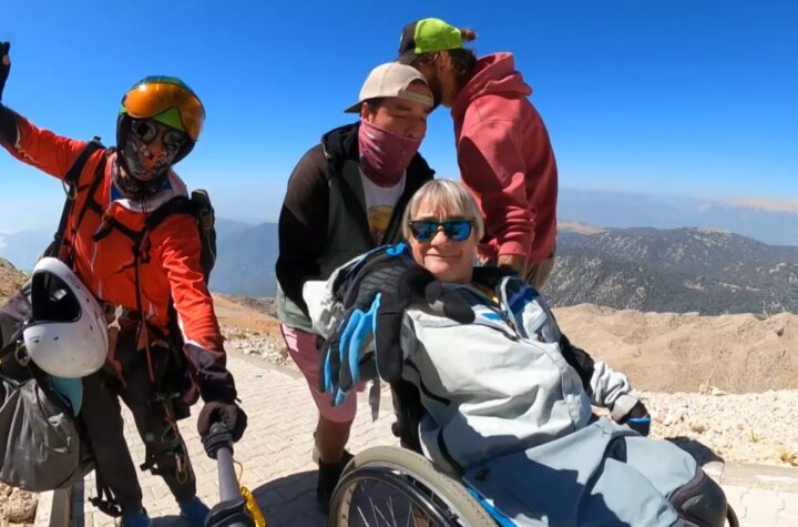 Antalya'nın Kemer ilçesine tatile gelen bedensel engelli Natalia Averchanka, Tahtalı Dağı'nın tepesinden yamaç paraşütü...