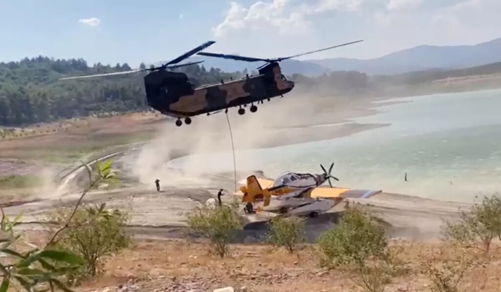 Burdur‘un Bucak ilçesi yakınlarındaki Karacaören Baraj Gölü’nde 2 gün evvel kırıma uğrayan yangın söndürme uçağı gölden çıkarılarak bölgeden taşındı. Hava Kuvvetleri Komutanlığı’na bağlı askeri helikopter, uçağı taşımak maksadıyla göle geldi. Evvel uçağın yakınındaki bir alana iniş yapan çift pervaneli helikopter daha sonra havalanıp uçağın bulunduğu noktaya yaklaştı. Uçağa gerçek alçalan helikopterden sarkıtılan halat, aşağıdaki vazifeliler tarafından bağlandı. Helikopter daha sonra halata bağlanan uçakla birlikte havalanarak, bölgeden ayrıldı. Uçağın Antalya’ya taşındığı ve süreçlerine burada devam edileceği öğrenildi.